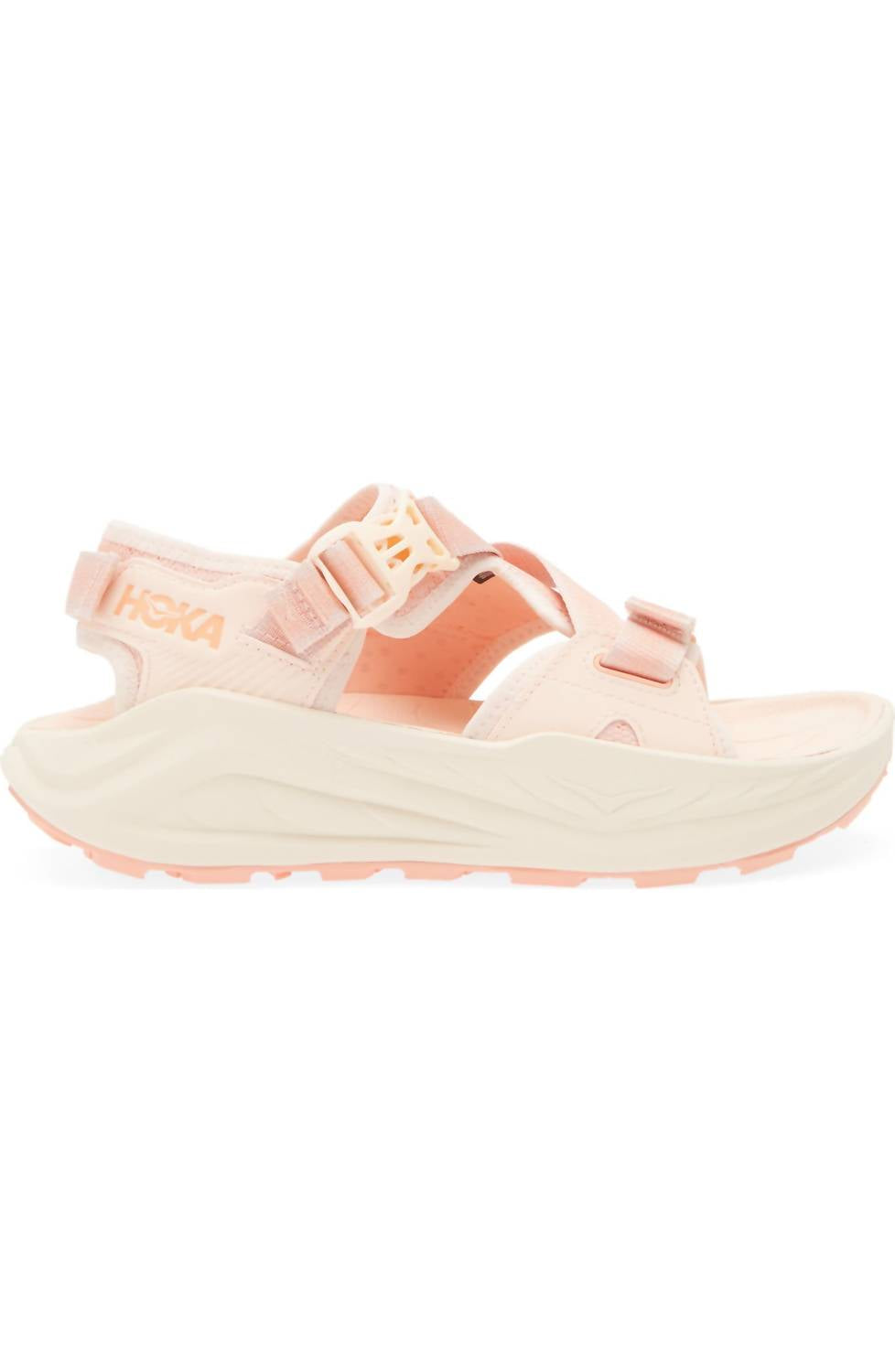 Flowy dresses, cropped pants, and even jumpsuits... this sandal works with them all! Discover the Hoka Infini Hike TC Sandal. This sandal features an open toe with a flat heel style, and its soft Neoprene upper ensures comfort for adult wearers during the spring season. It boasts three adjustable points for a secure fit and a convenient speed buckle for easy wear. The Vibram Megagrip outsole provides outstanding traction and durability with 5mm traction lugs, perfect for conquering both wet and dry terrains.