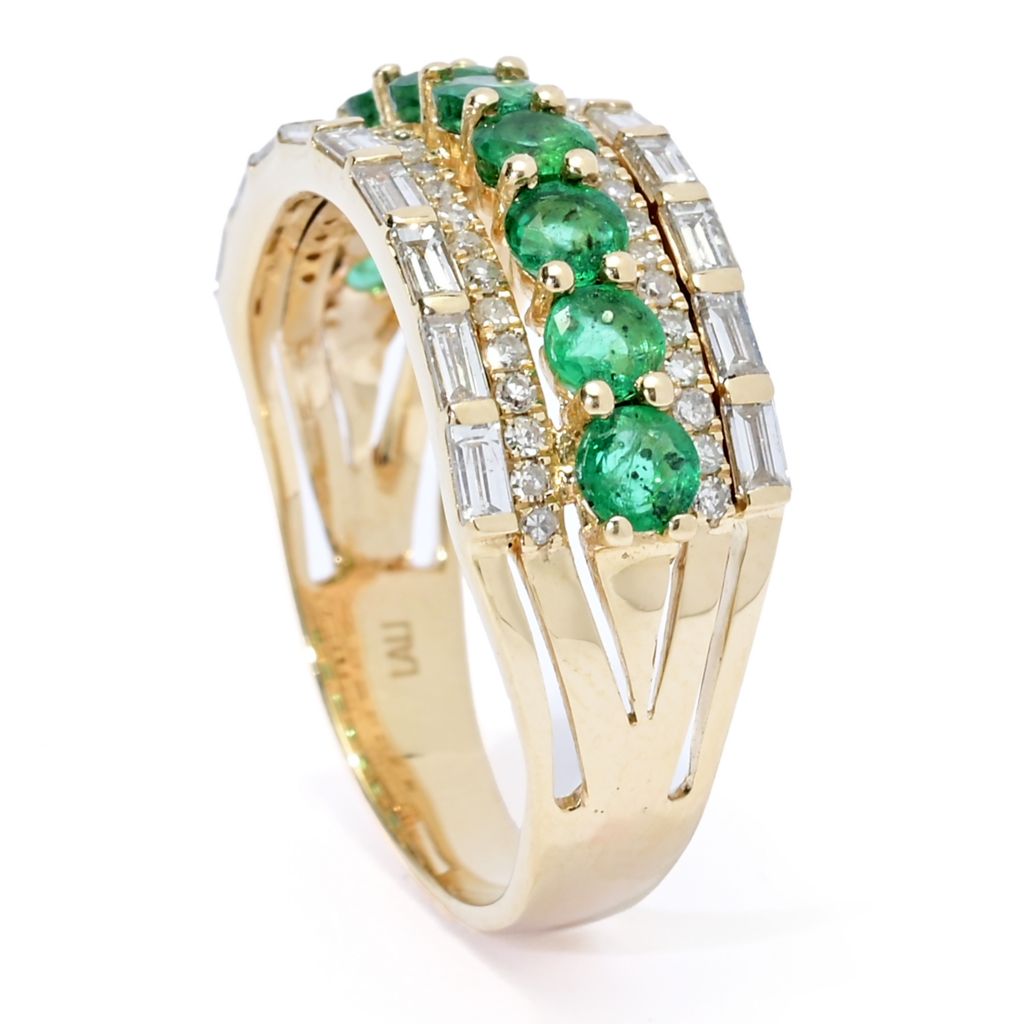 LALI Jewels 14K Gold Polished 1.74ctw Emerald & Diamond Ring, 4.1 grams