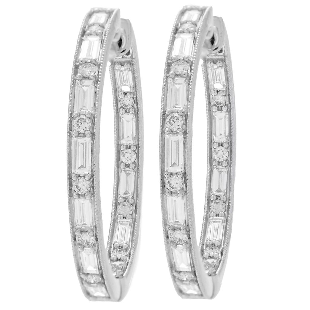Morris & David Choice of 14K Gold 1.26ctw Baguette & Round Diamond Hoop Earrings