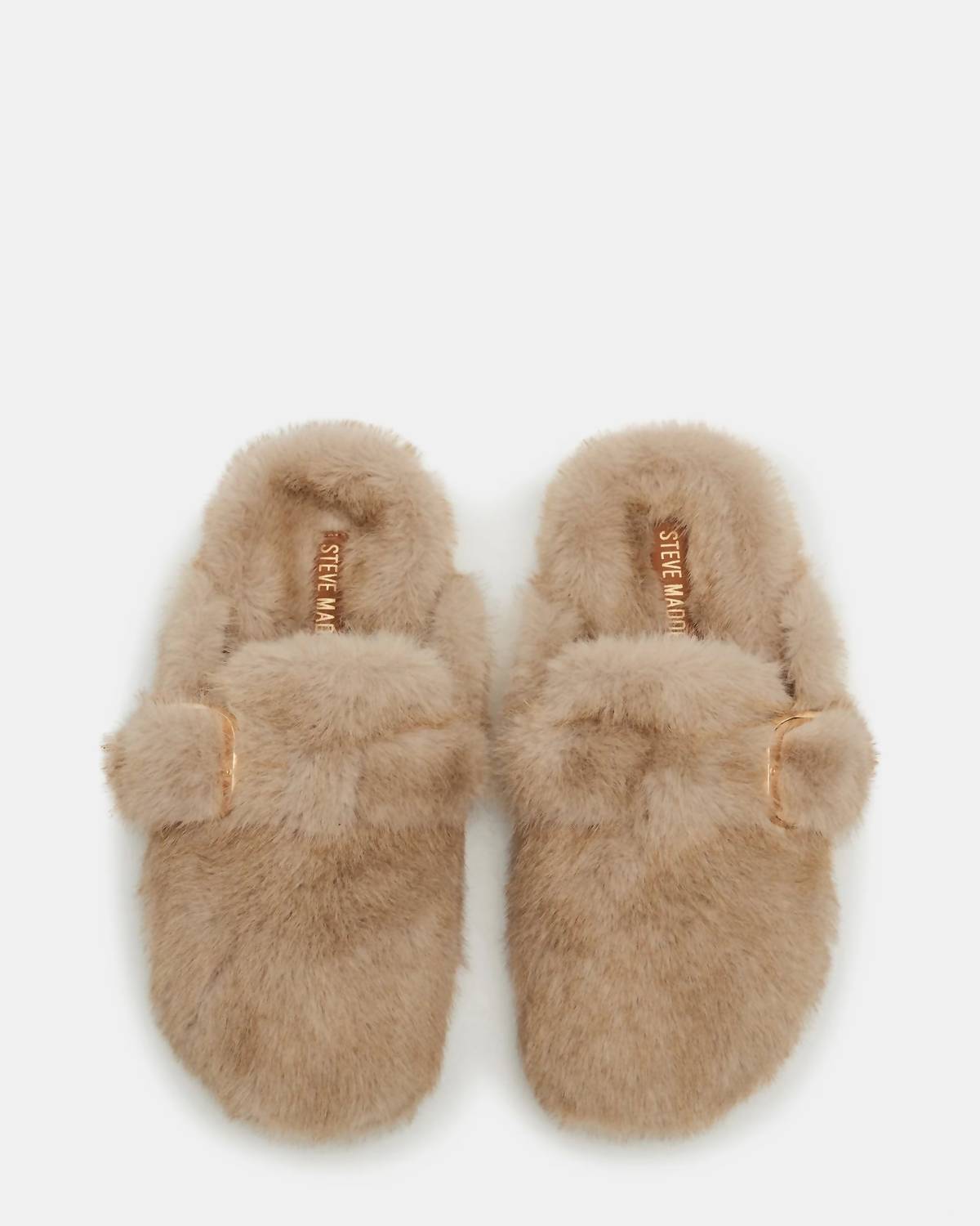 Slip into these, we promise you won't regret it. Stay cozy and stylish with this flat, slip-on shoe featuring an all-over faux fur design for ultimate comfort. A buckle detail adds a touch of flair and helps provide a secure fit. Finished with a soft faux fur lining, cushioned footbed, and a lightweight synthetic sole with a 1.25-inch heel, it’s the perfect blend of warmth and easy everyday wear.