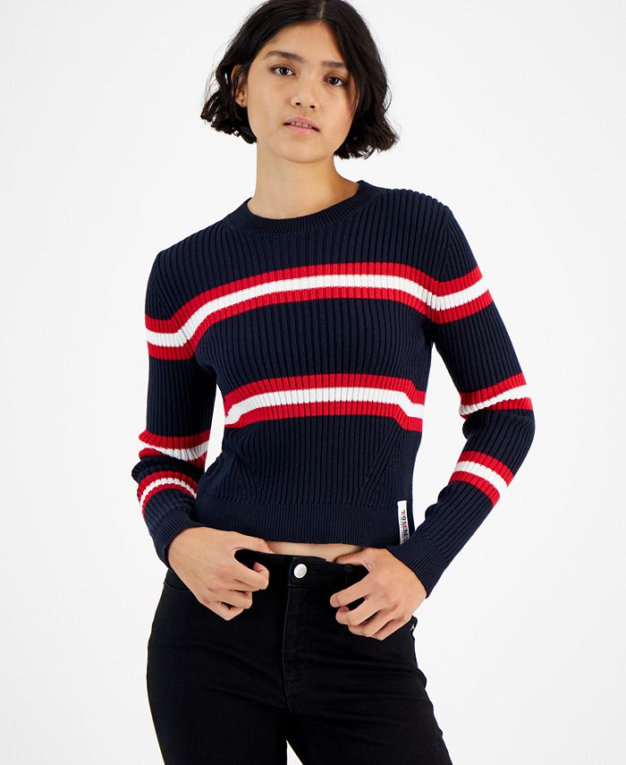Tommy Jeans gives you texture and style with this striped crewneck sweater Clearance