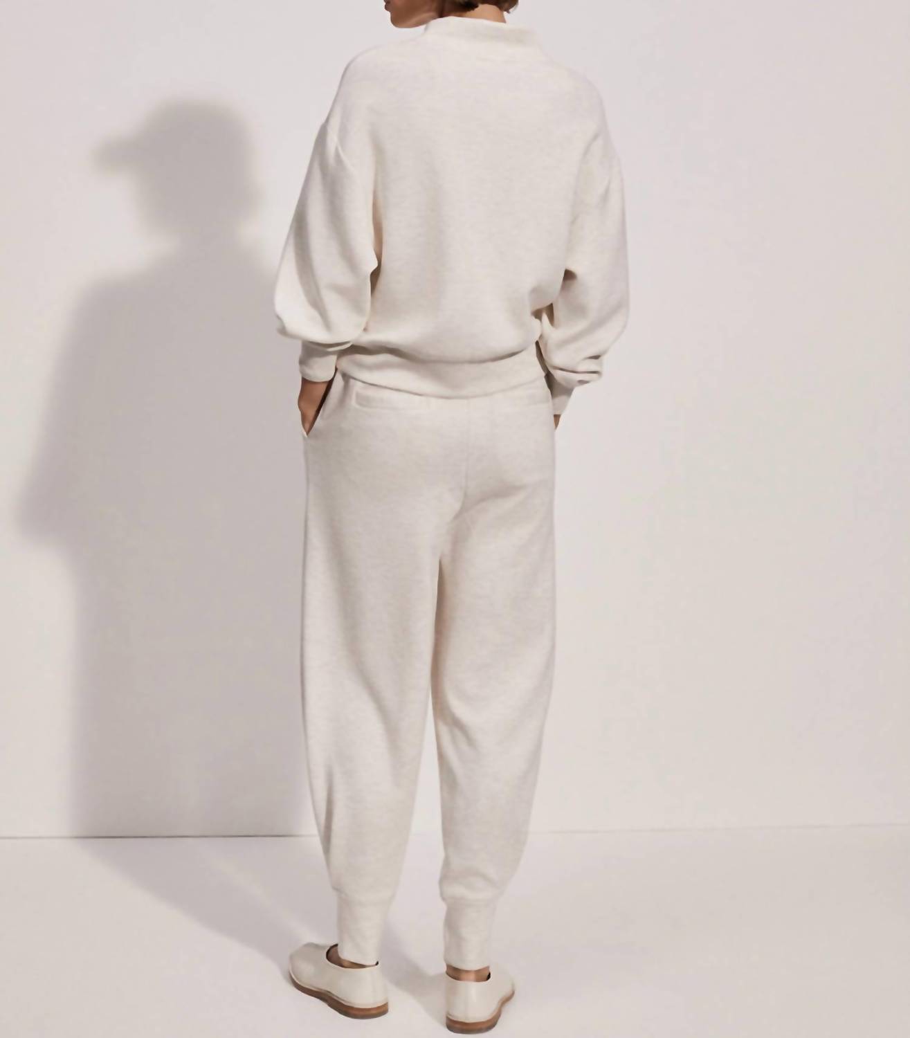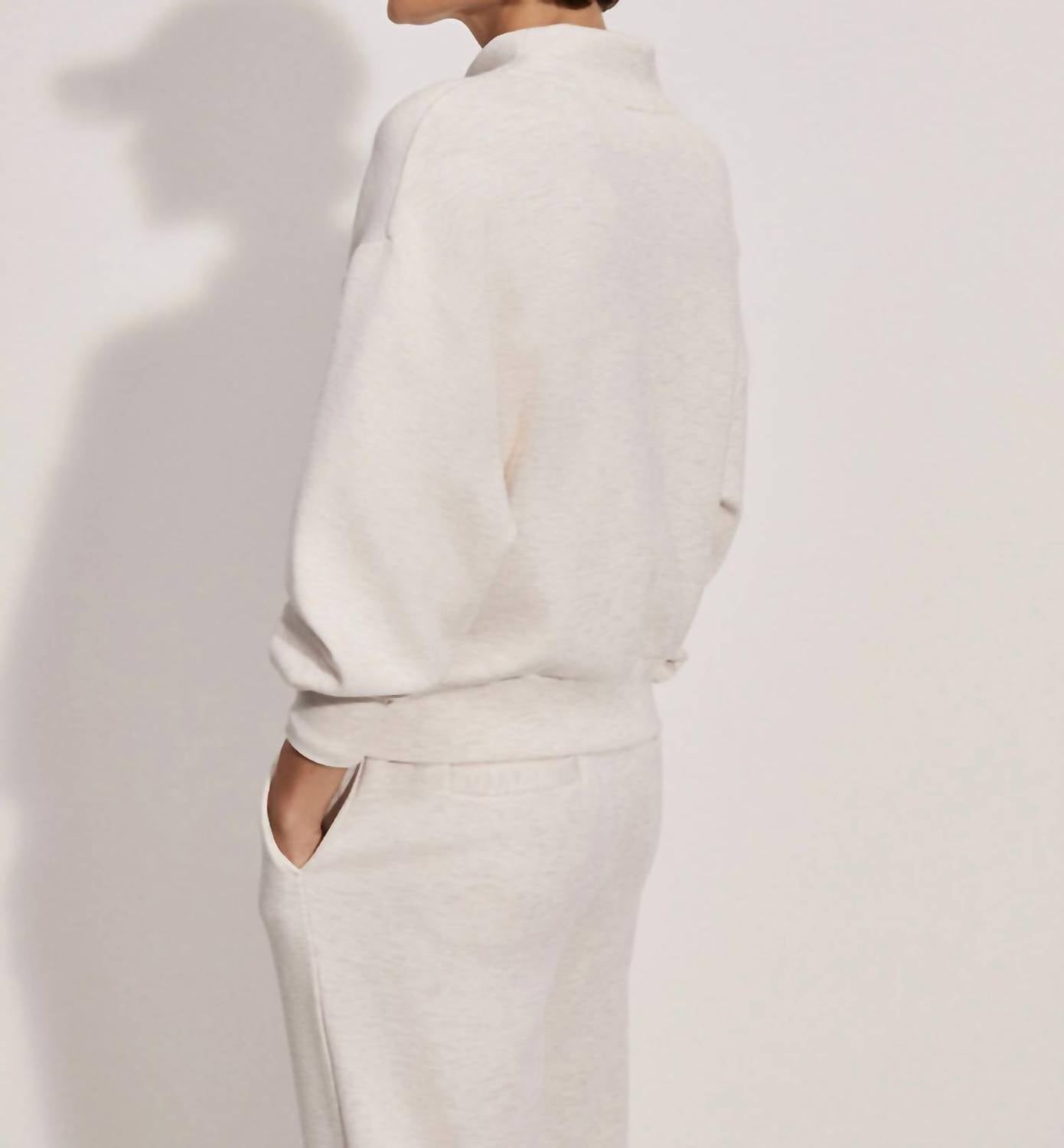 Subtly cropped sweat designed for versatile layering with dropped shoulders and deep cuffs. Made from lightweight DoubleSoft™ fabric. 72% viscose, 23% polyester, 5% elastane. Machine wash cool with similar colors. Do not bleach, tumble dry, or dry clean. Iron on low setting. Fasten zips before washing.