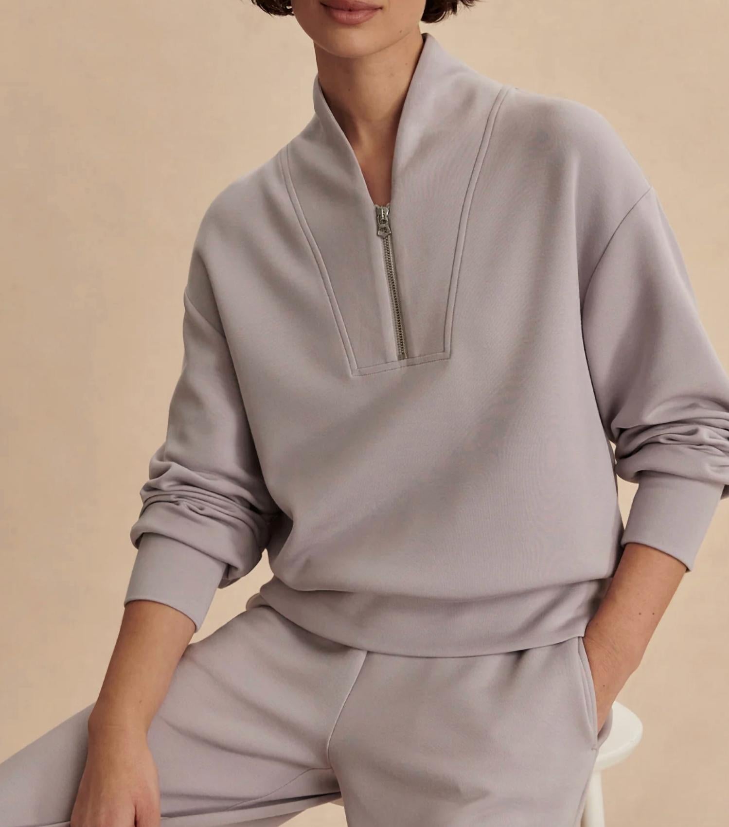 Wear this v-neck sweater with your favorite denim for the perfect fall look. The Davidson Sweat is a subtly cropped, lightweight layering piece crafted from soft DoubleSoft® fabric for all-day comfort. Designed with dropped shoulders and deep cuffs, it offers a relaxed silhouette that blends casual ease with modern style. Perfect for effortless everyday wear, this versatile top pairs seamlessly with coordinating sweatpants for a polished, laid-back look.