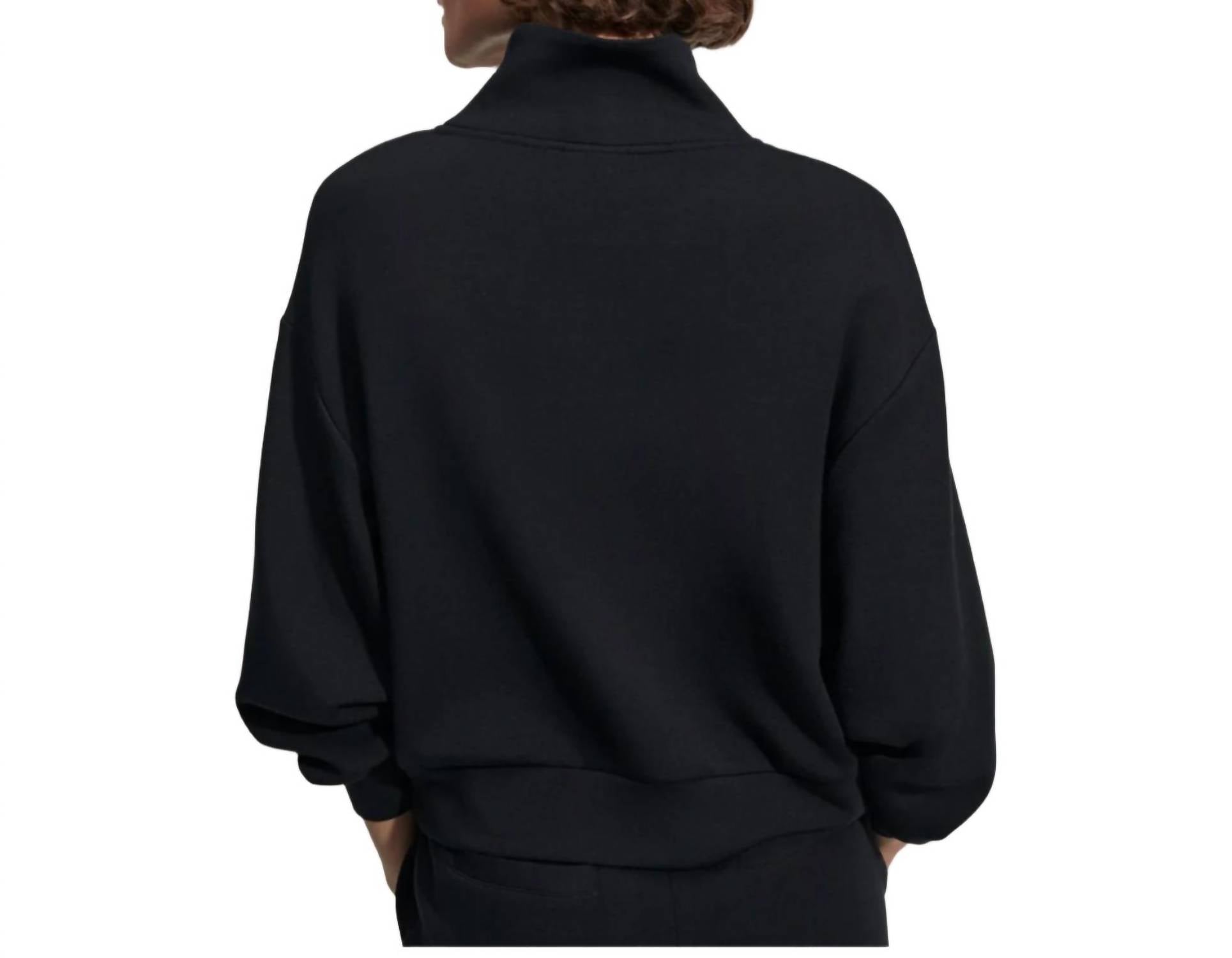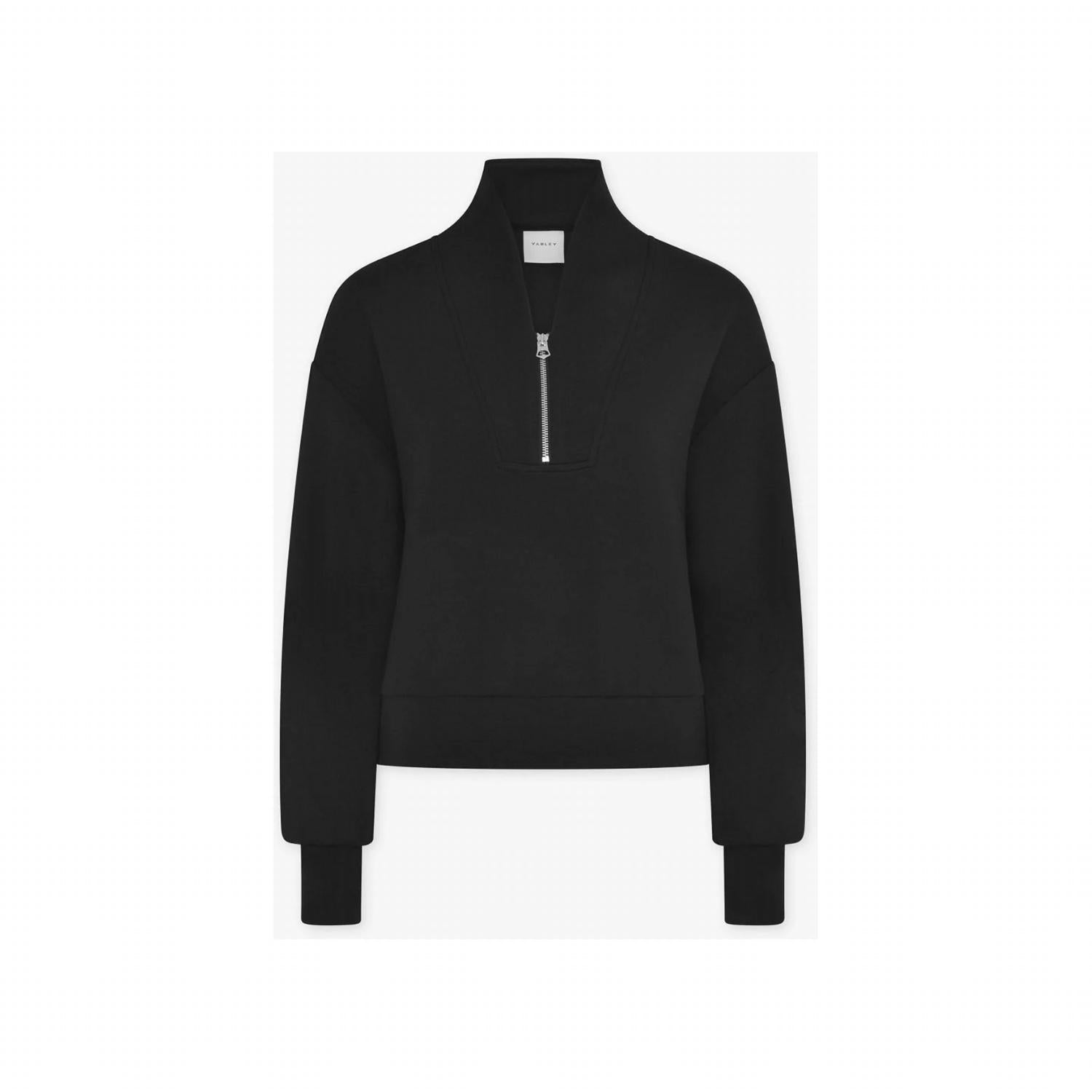 Whether you're running around town or lounging at home, this sweatshirt works for both. The Davidson Sweatshirt by Varley is a must-have for your wardrobe, offering subtle crop versatility in a sleek black shade. Crafted from a soft blend of 72% Viscose, 23% Polyester, and 5% Elastane, this lightweight DoubleSoft® fabric ensures comfort and style. The long sleeves feature drops shoulders and deep cuffs, completed with a convenient zip closure. Care is simple with machine wash instructions and laying flat to dry recommended.