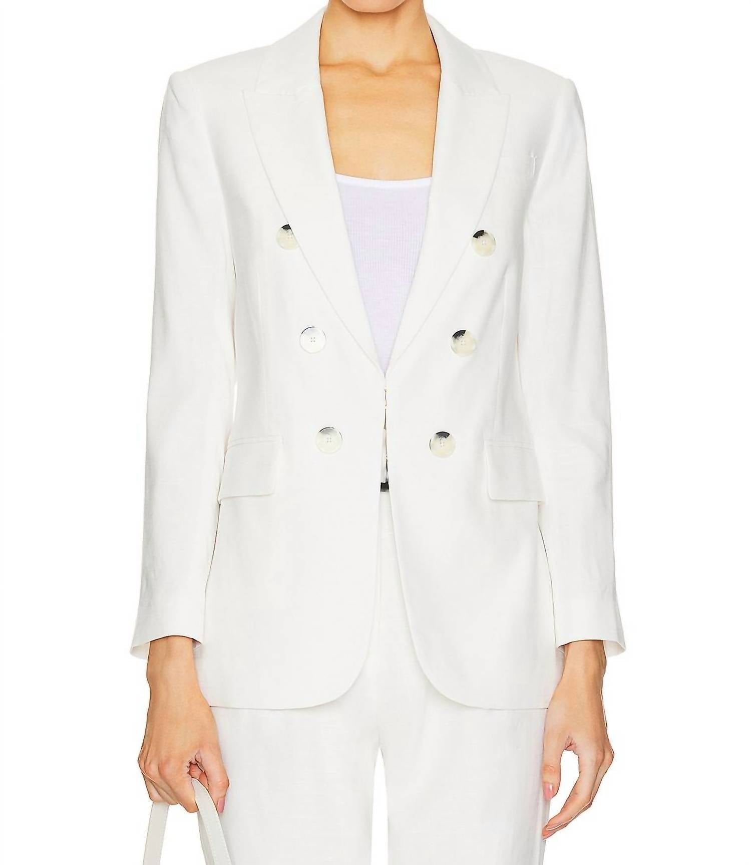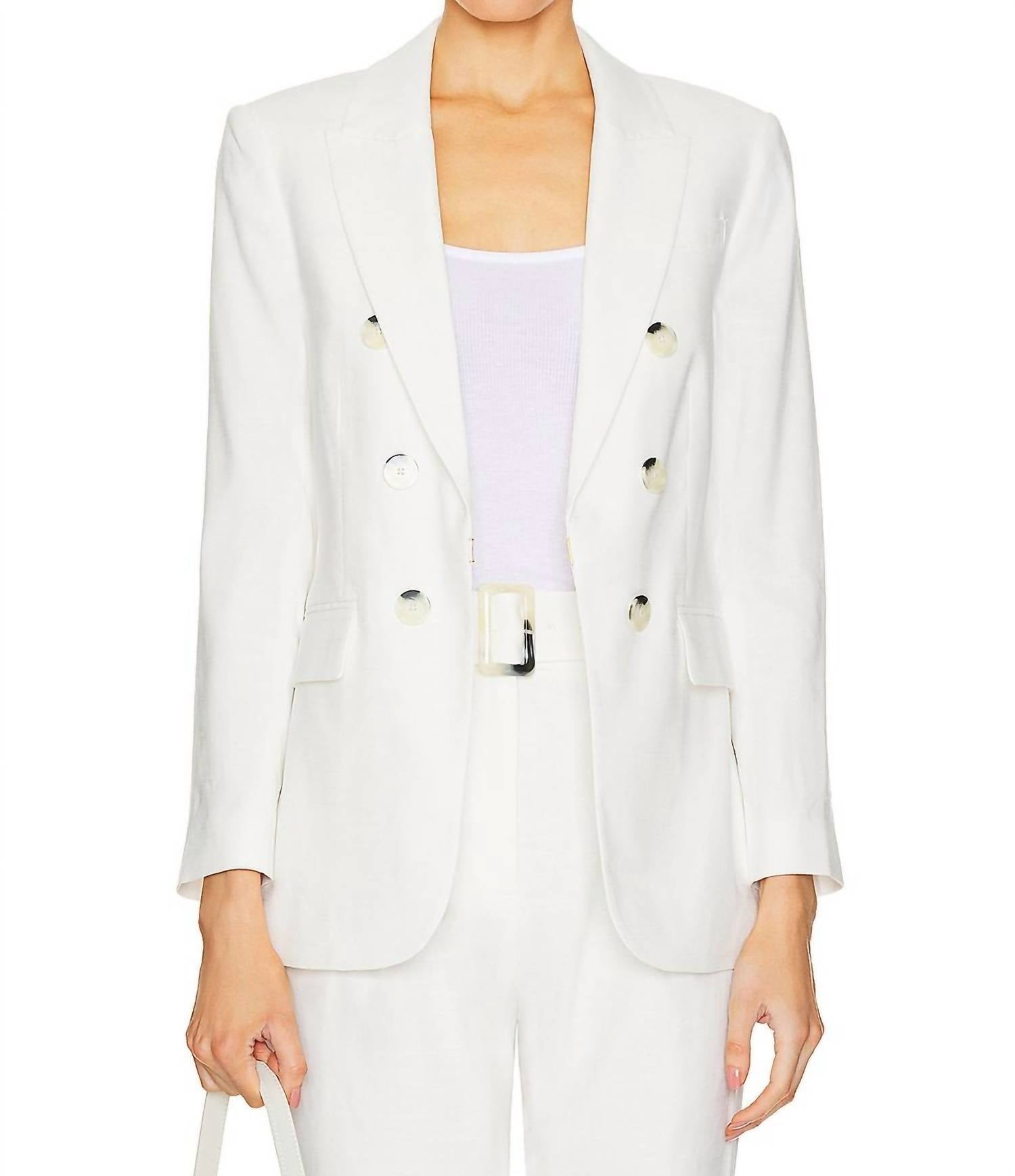 Tailored to perfection, this blazer will be your go-to jacket for years to come.This blazer features a single front hook and eye closure and lightly padded shoulders for a tailored look. It includes a 3-pocket design and is made from lightweight linen fabric for a breathable and stylish feel. The composition includes 55% linen, 43% viscose, and 2% elastane, with a lining of 96% polyester and 4% spandex for added comfort. For best care, dry clean only. Made in Vietnam.