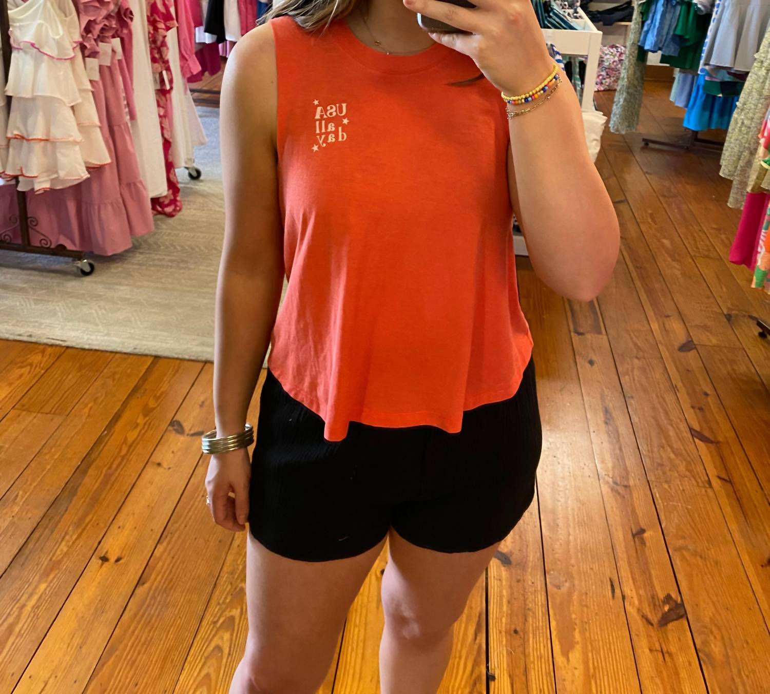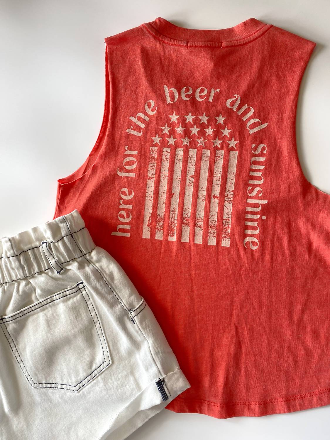 Fit, fabric and functionality. This tank top checks all the boxes.Featuring a familiar graphic font and patriotic colors. Made using soft CVC Jersey knit fabric, has a burnout wash for that worn-in feel. Crew neck. Comfortable and relaxed fit.
