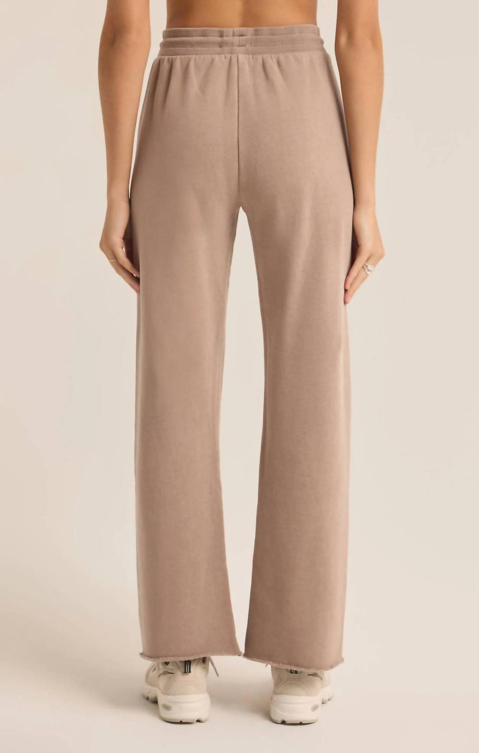 The perfect pant for running around town and looking cool while doing it. Embrace casual comfort with the Layton Sweatpants by Z Supply, featuring a relaxed straight leg design and a high-rise waist for a laid-back look. Crafted from soft, brushed fleece cotton, these joggers promise all-day coziness in a chic latte hue. With an elastic waistband and contrast waist tie, they ensure a secure and stylish fit. Closure: Pull on. Inseam: 31".