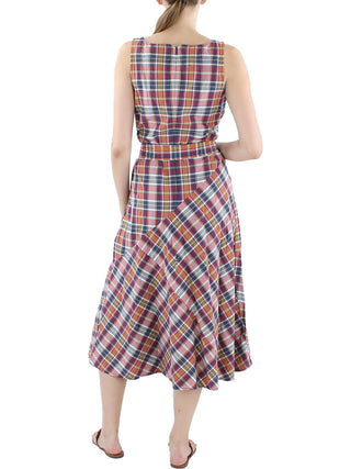 Lauren Ralph Lauren Women's Madras Plaid Cotton Midi Dress Size 16