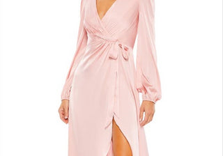Ieena for Mac Duggal Satin Wrap Gown - Rose Pink, Size 12