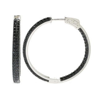 Platinum Plated Choice of Size White Zircon Pave Inside Out Hoop Earrings