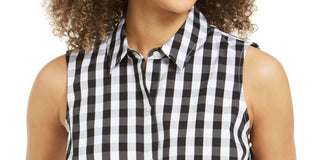 Charter Club Women's Gingham Print Tie Hem Shirt Black Size 16