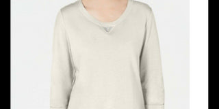 Karen Scott Women's Sport Cotton Studded 3/4 Sleeve Sweatshirt White Size Small
