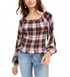 American Rag Junior's Printed Smocked Poet-Sleeved Blouse Red Size XX-Large