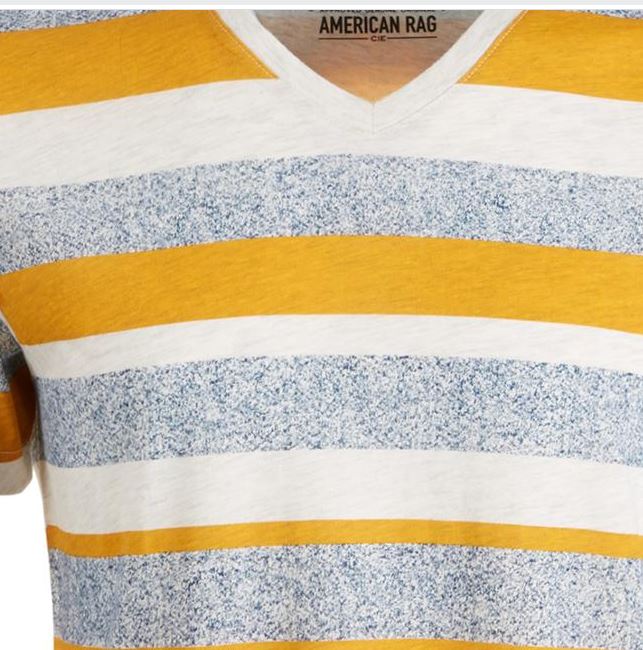 American Rag Men's V Neck Striped T-Shirt Yellow Size Large