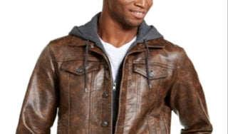 American Rag Men's Faux Leather Trucker Jacket Brown Size XX-Large