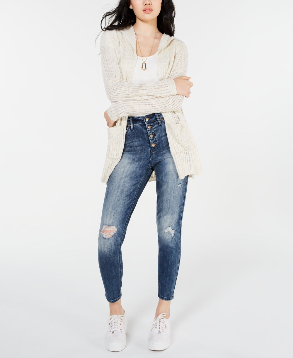 American Rag Women's Windowpane Plaid Long Sleeve with Buttons Maxi Shirt Dress Dress White Size S...