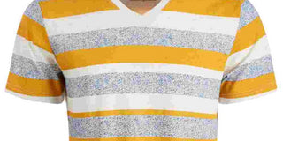 American Rag Men's Striped V Neck T-Shirt Yellow Size XX-Large
