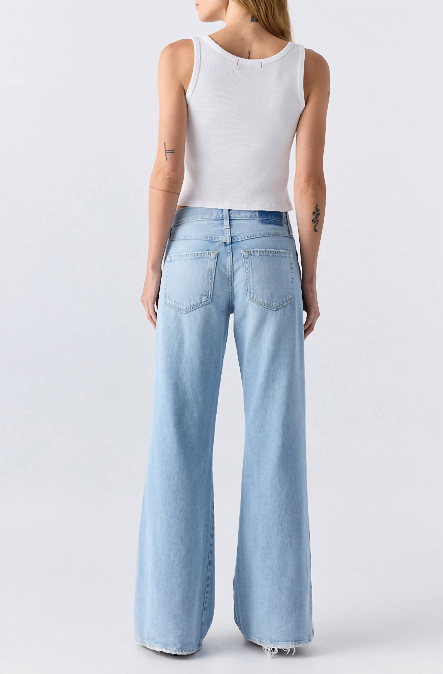 Pair these wide leg jeans with mules, slides or your favorite strappy sandals. Introducing the Faith Flare Jeans by AMO, perfect for achieving a laid-back streetwear look. These women's jeans, featuring a solid pattern, have a relaxed fit through the hips and thighs, flaring at the knee with a flattering mid-rise waist. Crafted from a cotton blend of 78% cotton and 22% lyocell, they come in the captivating Summer Crush wash. Designed with a button closure, these jeans offer dimensions such as a 33" inseam and a front rise of 10 3/8".