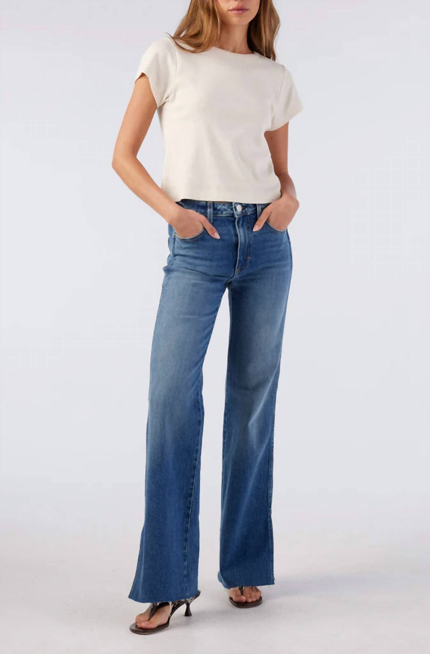 Pair these wide leg jeans with mules, slides or your favorite strappy sandals. Introducing the AMO Georgia Split Flare Jean in Dearest, a high-rise flared silhouette that brings a stylish twist with its unexpected side slit at the hem. Crafted in Los Angeles from a comfortable cotton blend consisting of 98% Cotton and 2% Elastane, these jeans are machine washable for easy care. Featuring a zip closure, this piece boasts a 33" inseam and a front rise of 10.75", with Danielle modeling a size 25 at 5'8.5".