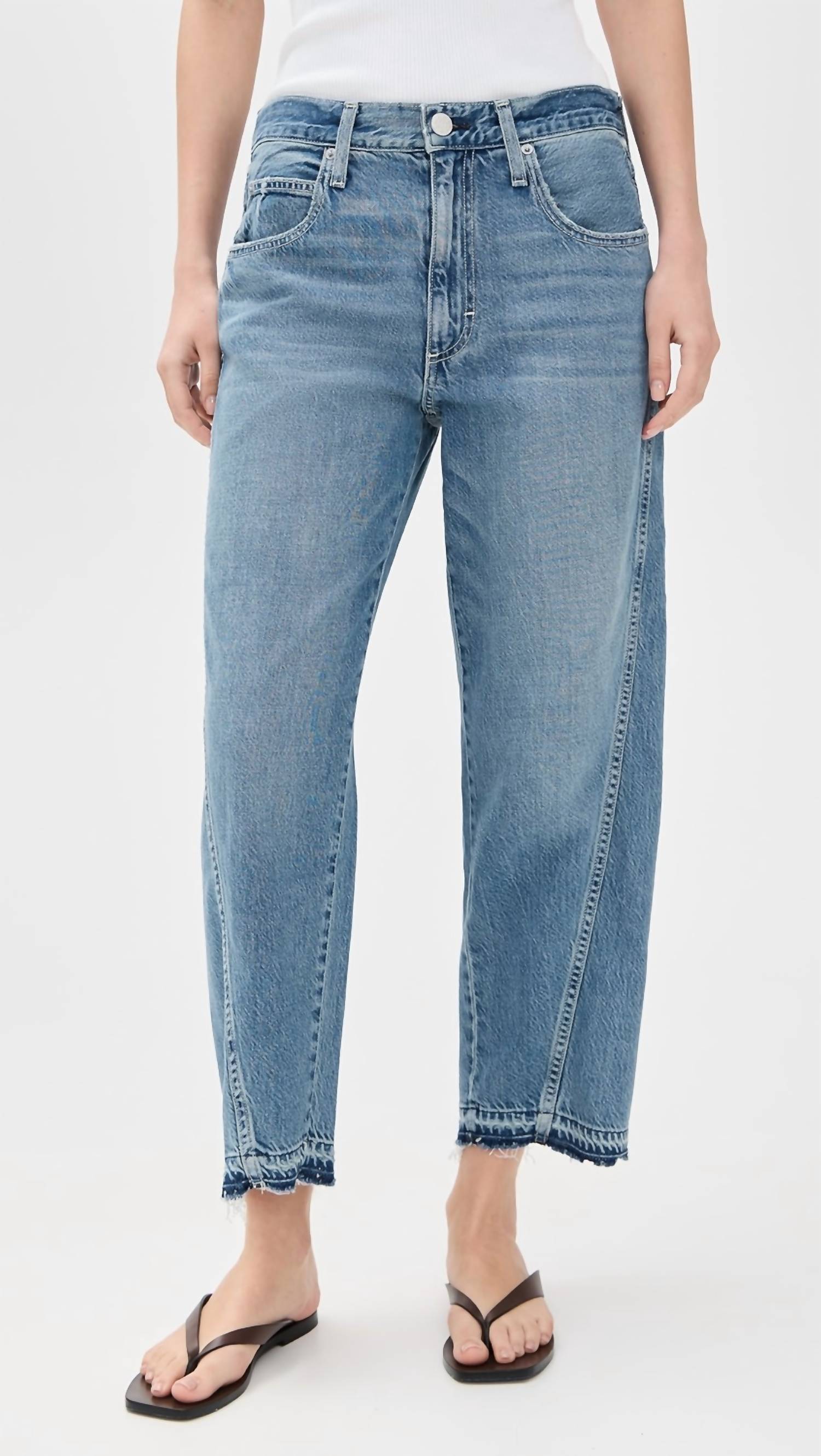 The perfect cropped jean for those transitional seasons. Crafted from lightweight, non-stretch denim, this style features subtle fading and whiskering for a naturally worn-in look. The frayed hem adds a touch of edge, while the classic five-pocket design and button closure with zip fly offer timeless denim detailing. Made from a blend of 60% cotton and 40% lyocell, it combines durability with a soft, comfortable feel.
