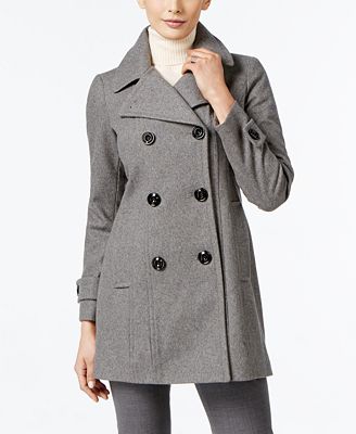 Anne Klein Double-Breasted Long Peacoat Medium Gray