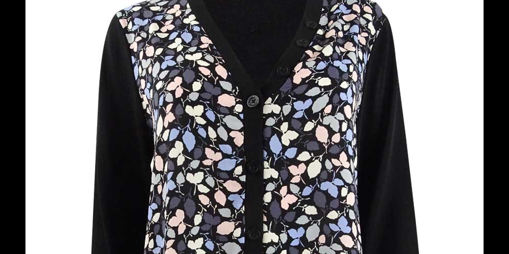 Anne Klein Women S Floral-Print Cardigan Charcoal Size Large