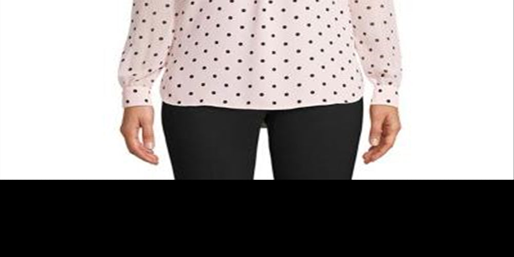 Anne Klein Women's Long Partitioned Poet Blouse| Updated with a mock neck| this poetic blouse by Anne Klein features an all-over polka dot print and is romanticized by long cuff sleeves