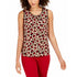Anne Klein Women's Leopard Print Tie V Neck Short Sleeve Top Brown Size Medium