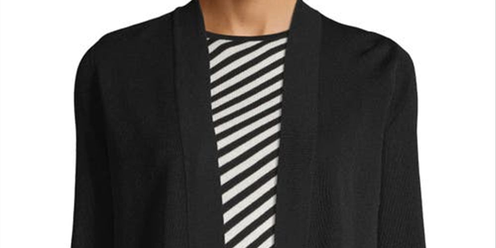 Anne Klein Women's Malibu Open Front Cardigan Black Size Large