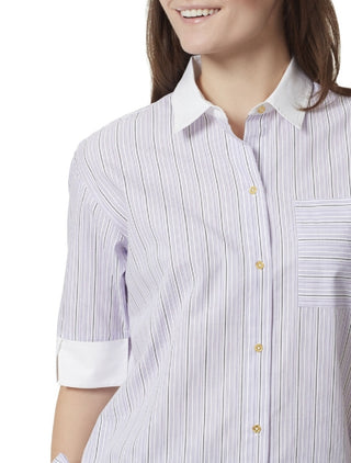 Anne Klein Women's Striped Long Sleeve Collared Top Gray Size X-Small