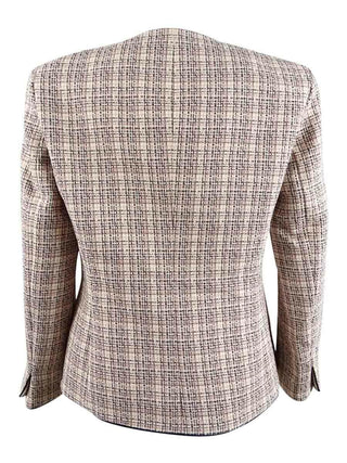 Anne Klein Women's Piping-Trim Plaid Jacket Pink Size 12