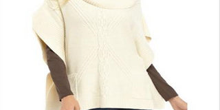 Anne Klein Women's Cowl Neck Mixed Stitch Poncho Sweater Pearl White Size 2XS