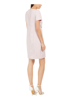 Anne Klein Women's Short Sleeve Jewel Neck Above the Knee Shift Dress Pink Size 12