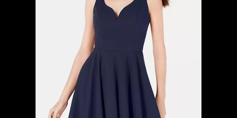 Approx. 24-3/4 long from center back neck to hem. Length is based on size 9/10 and varies 1/4 between sizes|V-neck; Fit & flare silhouette|Back zipper closure; Single button closure on back of neckline|Molded cups|Polyester/spandex; lining; polyester