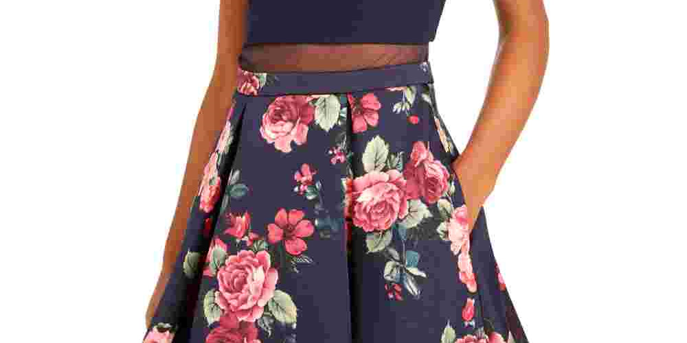 B Darlin Women's A Line Pleated Floral Illusion Dress Blue Size 9