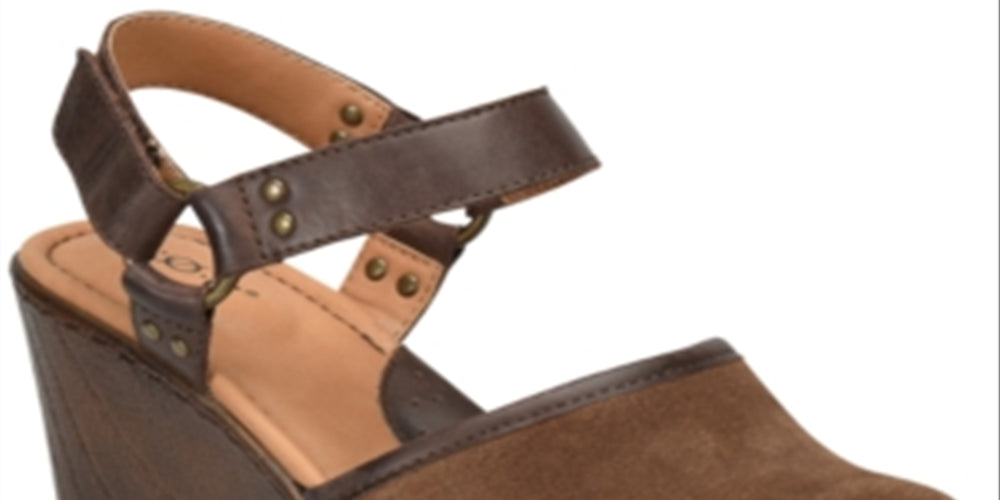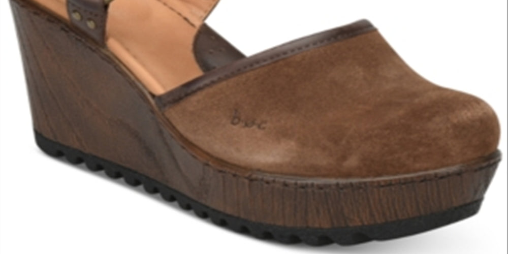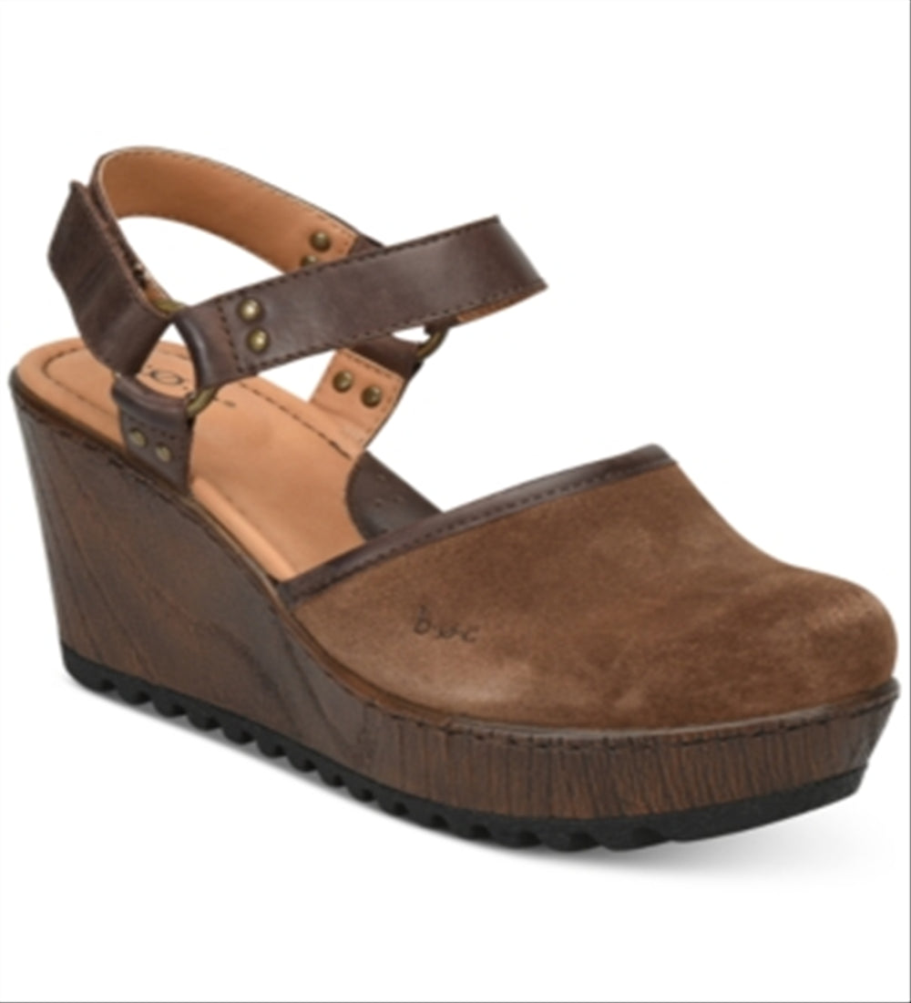 B.O.C. Women's Rina Leather Ankle Strap Wedge Heels Black Size 10 M