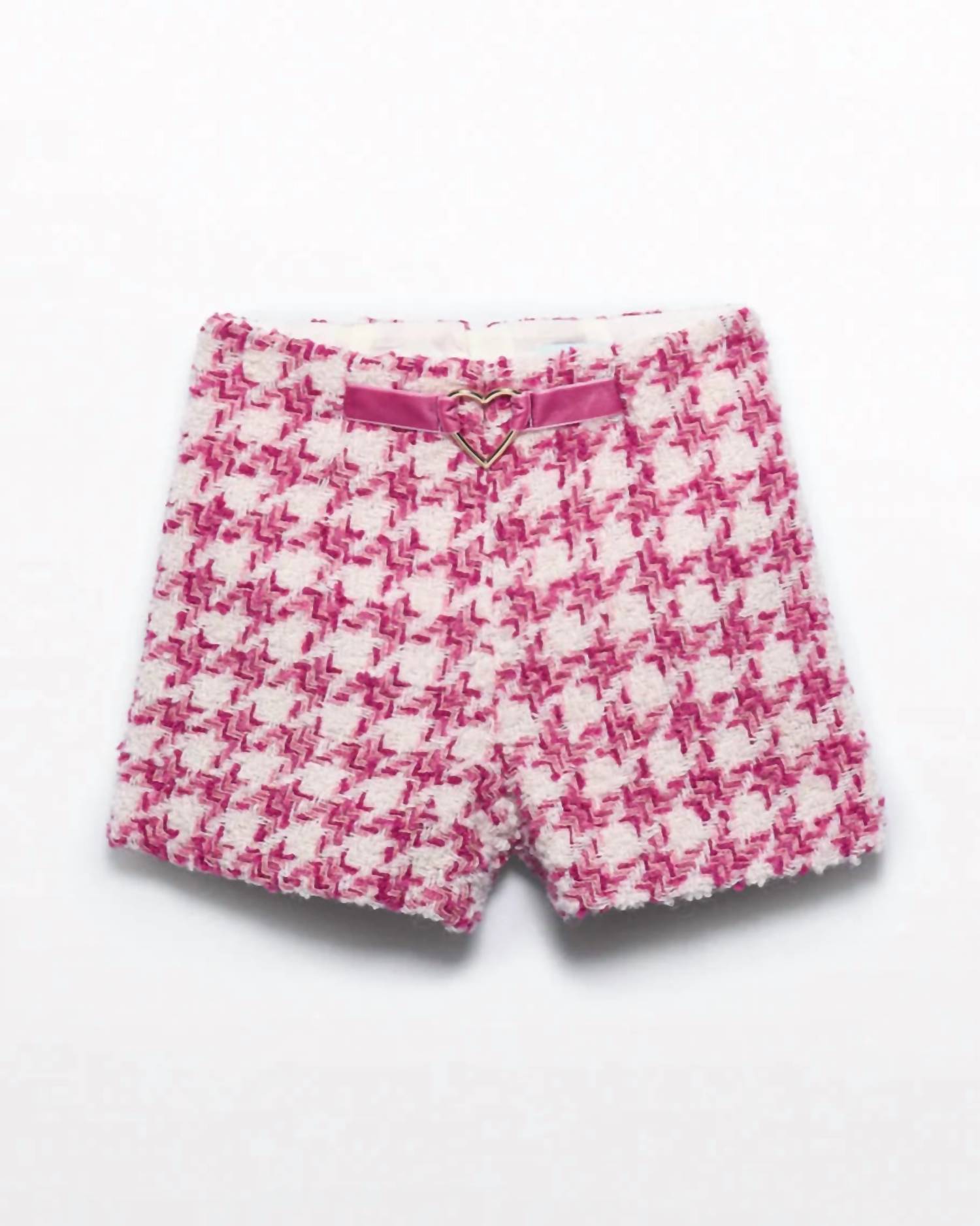 Introduce a touch of sophistication to your little one's wardrobe with the Girls Houndstooth Shorts by Abel & Lula. Crafted in a charming pink plaid & check pattern, these shorts are made from 60% Polyester and 40% Wool with a comfortable 100% Cotton lining. Ideal for any occasion, they ensure both style and comfort. Care instructions include hand washing at 30°C, line drying, and low heat ironing.