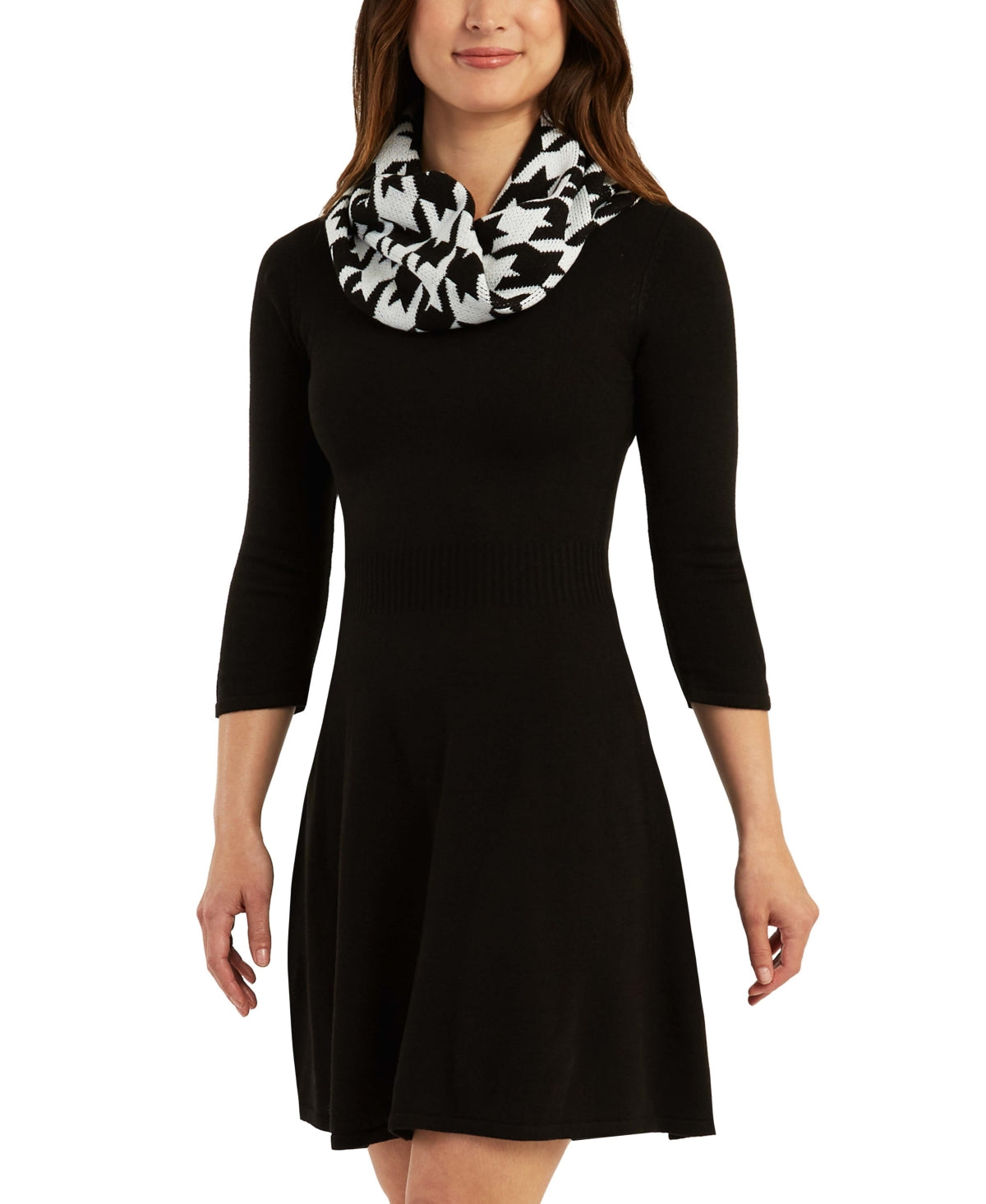 BCX Junior's Printed Scarf Fit & Flare Sweater Dress Black Size XS