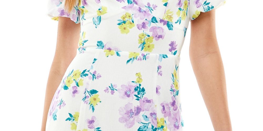 Charming florals adorn this cute dress from City Studios| Pair this puff sleeve design with heels or flats for a chic finish|