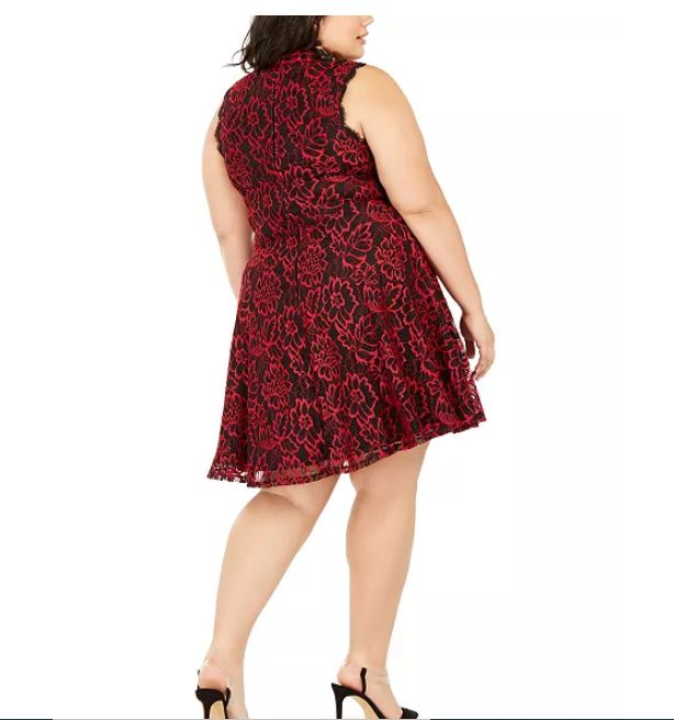 City Studios Juniors' Plus Lace Fit & Flare Dress Red Size 16 W