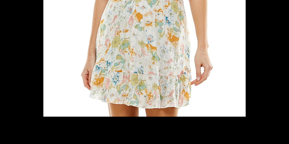Grab the spotlight in this ultra-flirty dress from City Studios| styled with cute cutouts.| Imported| V-neck; fit & flare silhouette| Back zipper closure | Allover print; cutouts at sides and back; ruffled accents and hem| Lined