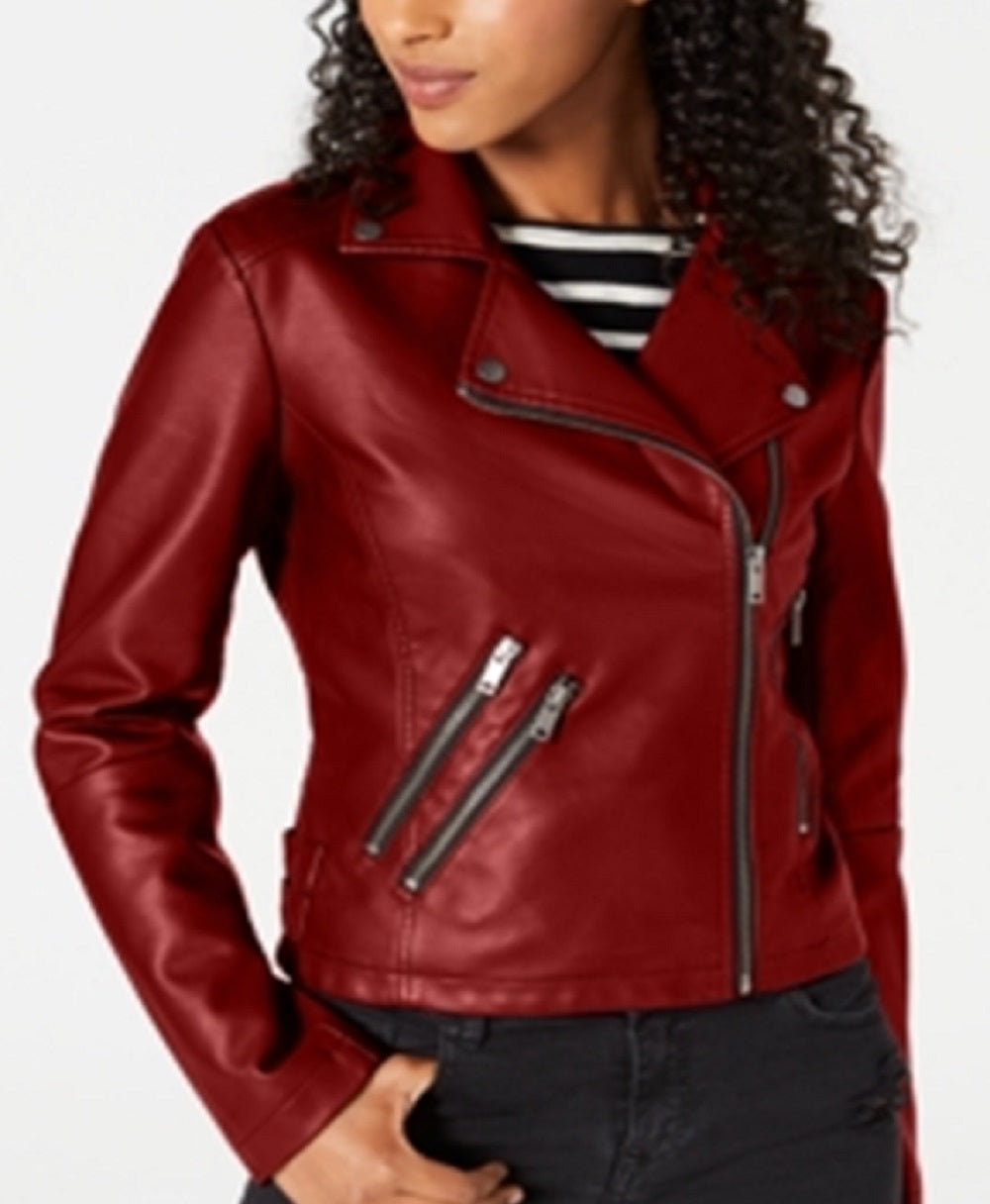 Coffeeshop Junior's Faux Leather Moto Jacket Red Size Small