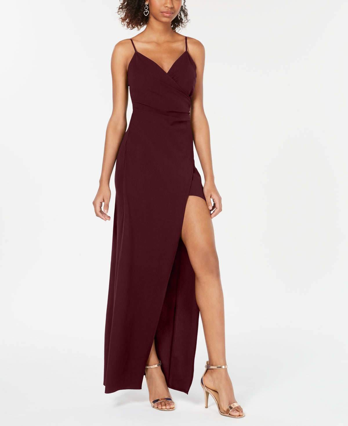 Emerald Sundae Junior's High Slit Gown Maroon Size X-Small