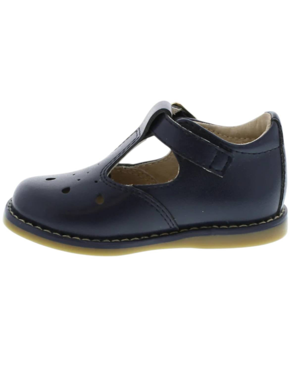 The Footmates Harper Mary Janes in navy leather are perfect dress shoes for toddlers, offering timeless style and comfort. These shoes feature a true buckle T-strap closure for a secure and adjustable fit, along with a charming round toe shape. To maintain leather quality, clean with a damp cloth and use a leather conditioner periodically, while avoiding prolonged water exposure.