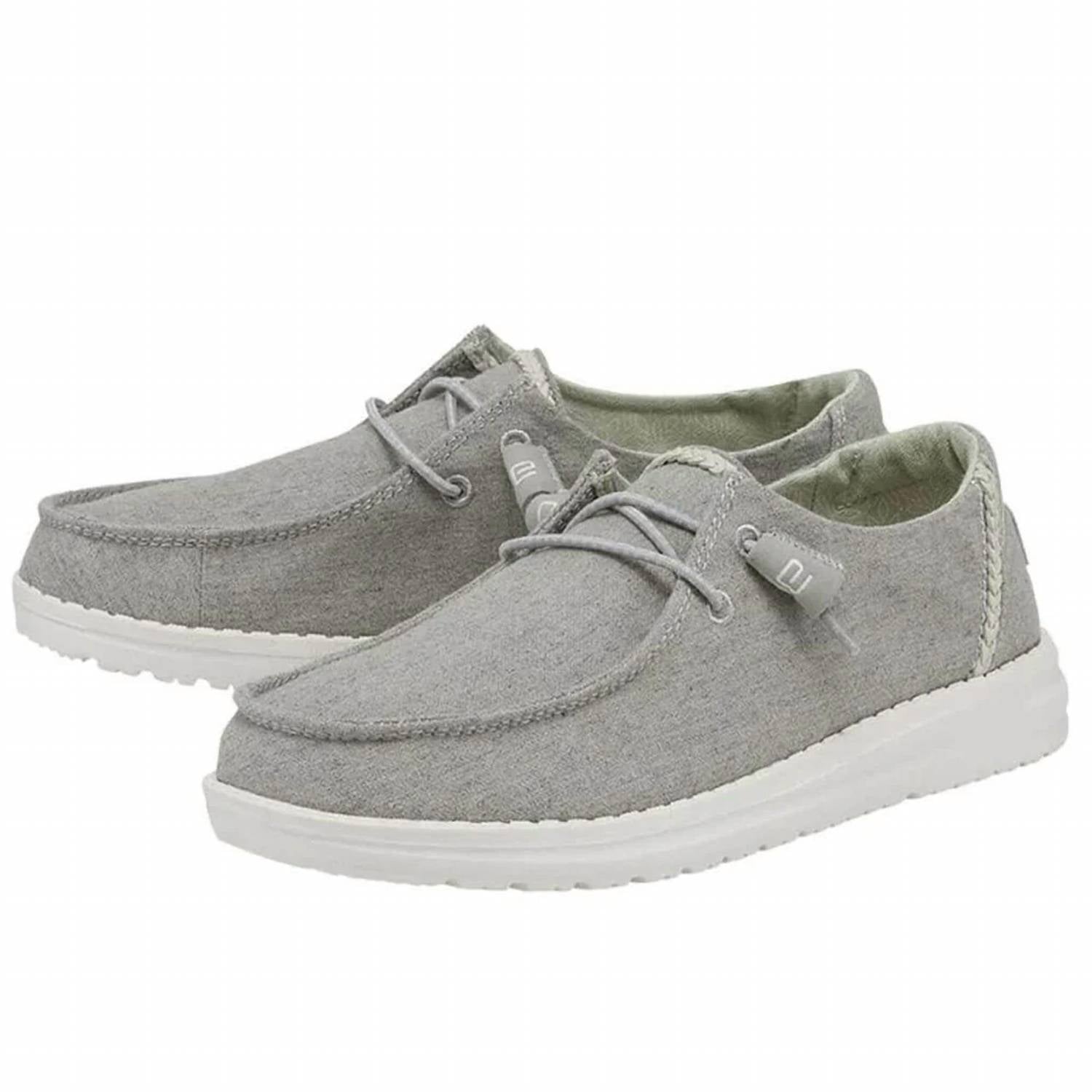 Designed for stylish comfort in a braided grey hue. Feature Flex & Fold technology with an organic cotton upper and a soft patterned cotton lining. Easy-on system with elastic laces ensures a snug fit, paired with an UltraLIGHT outsole and an ergonomic, leather-lined, removable memory-foam insole. Machine washable in cold water and air dry for easy maintenance.