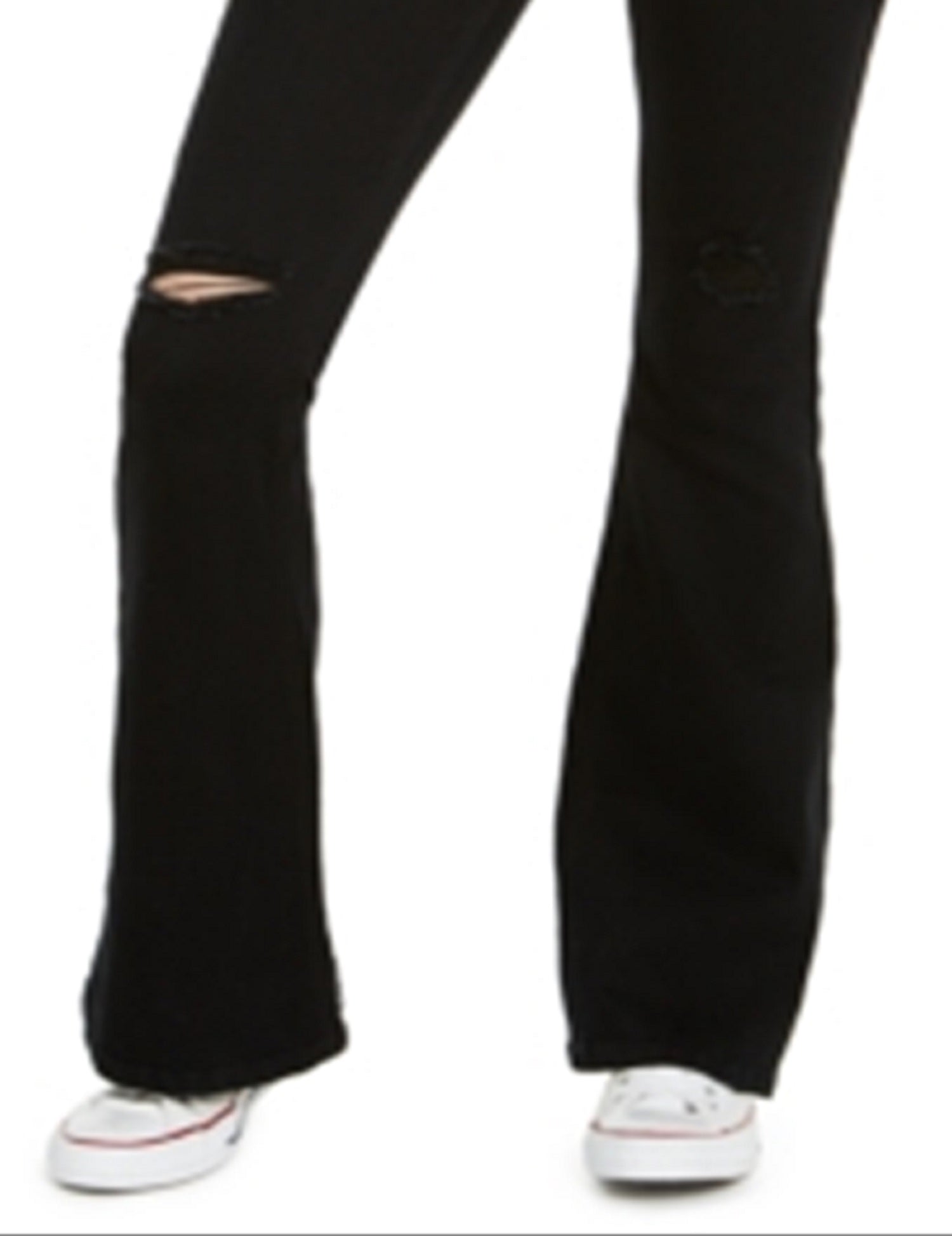 Flaunt your flair for retro fashion in Indigo Rein's high-rise jeans featuring front rips and dramatic flared legs|