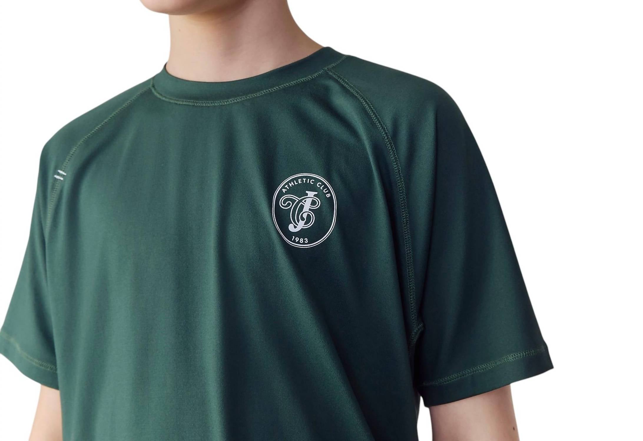 Introducing the Boys Relaxed Tech Graphic T-Shirt by J.Crew, blending style with performance for active young adventurers. This short-sleeve tee, crafted from a high-tech performance fabric, offers tons of stretch and is composed of 90% polyester and 10% elastane. Whether on the playground or the sports field, its relaxed fit makes it perfect for layering. Care is a breeze with machine wash compatibility. Color: Green.