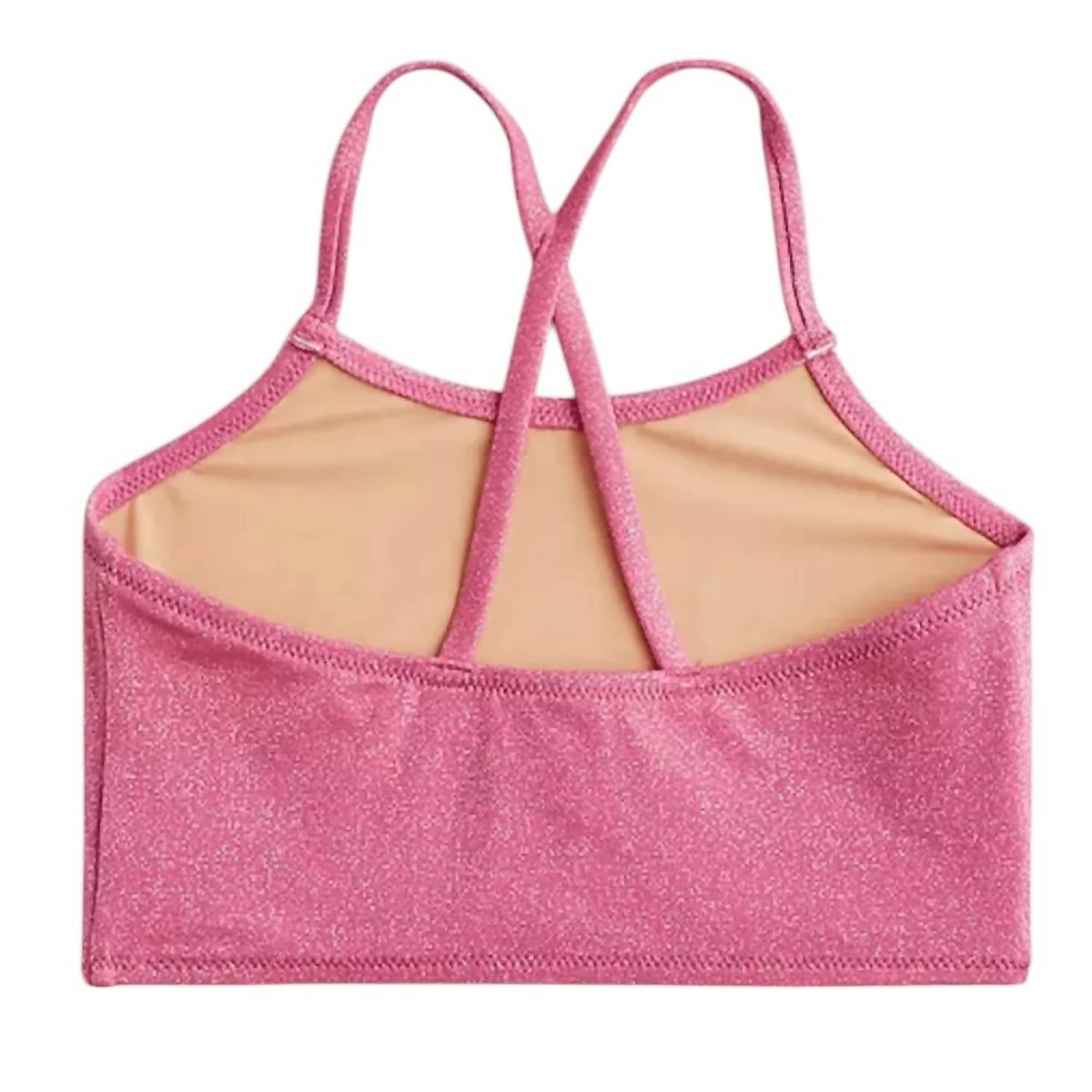 Introducing the GIRLS SHIMMER TOP SWIMSUIT WITH UPF 50+ by J.Crew, a perfect blend of style and protection for young fashionistas. This swimsuit top is crafted with built-in UPF 50+ sun protection and a dazzling shimmer finish, ensuring both safety and chic appeal. Composed of 78% polyamide, 12% metallic threads, and 10% elastane, it's designed for a comfortable true-to-size fit. Care is effortless with machine wash instructions. Available in a delightful pink hue, it's a must-have for sunny days at the beach or pool.