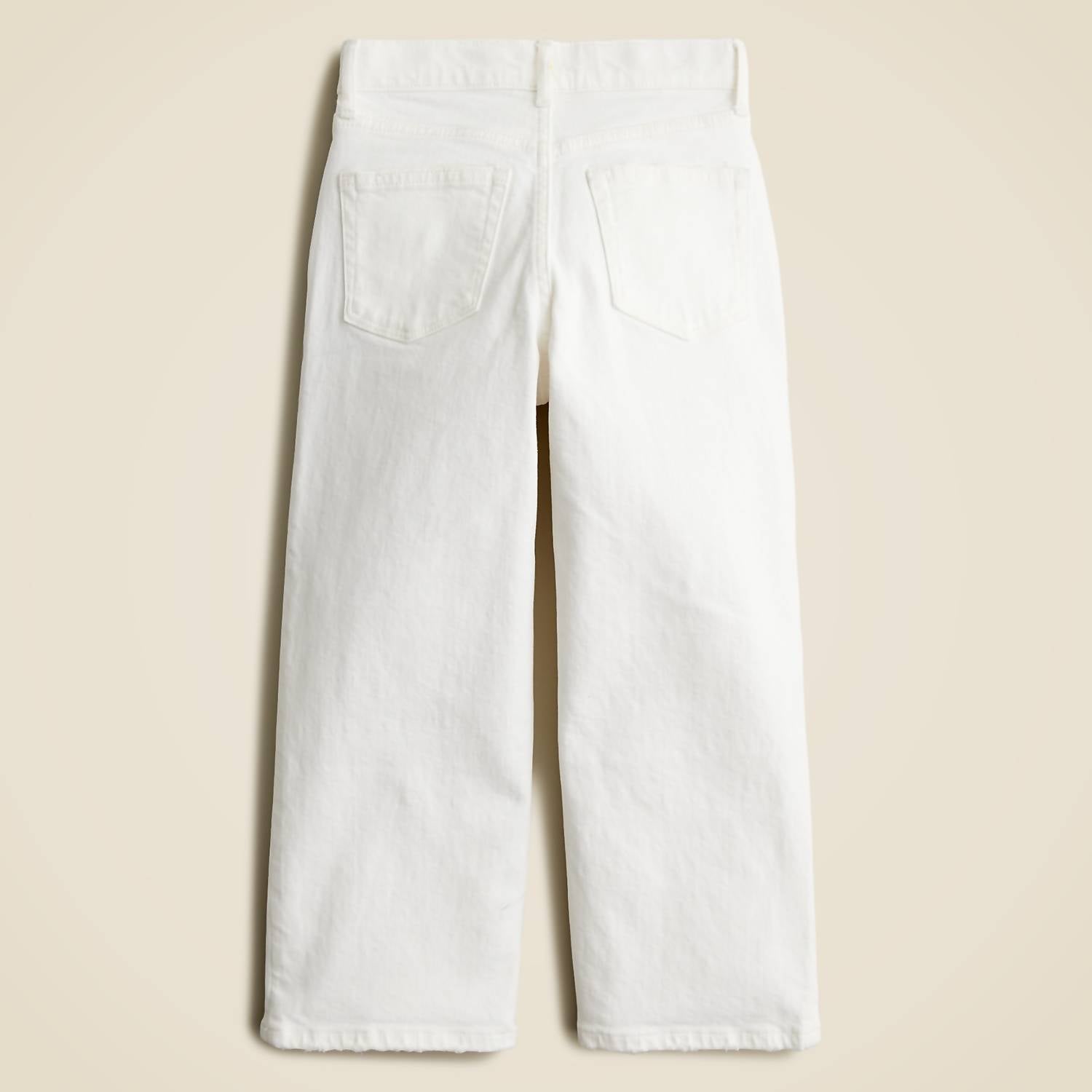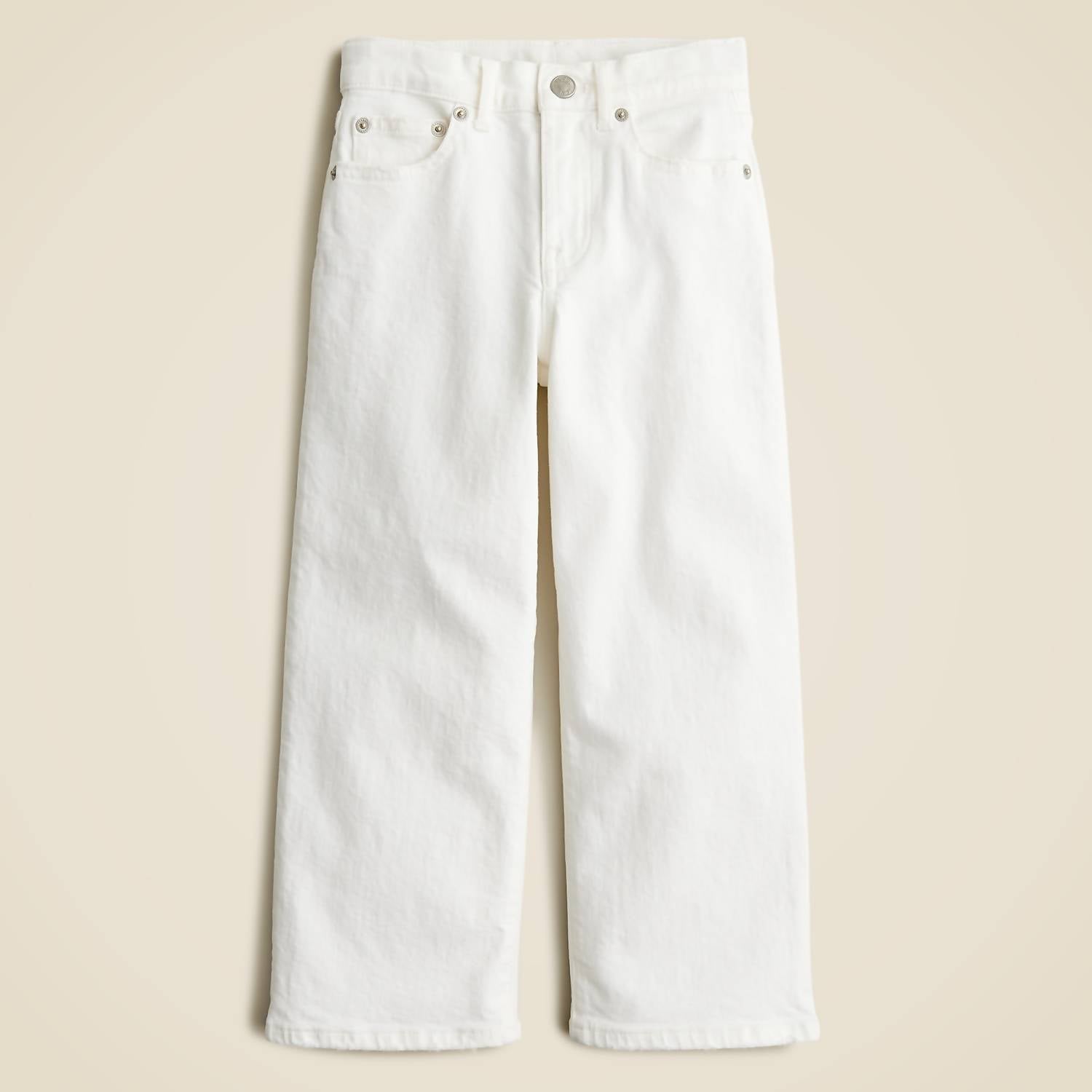 Introducing the Girls Slim Wide-leg Jean by J.Crew, the ultimate blend of comfort and style for your little fashionista. These white jeans feature a slim fit through the thigh with a relaxed, not-too-wide leg and fall to the ankle, offering a modern silhouette crafted from high-quality denim. Composition: 98% Cotton, 2% Elastane. Origin: Bangladesh. Care: Machine wash and tumble dry. Designed to support Better Cotton's mission, these jeans bring an eco-friendly touch to her wardrobe.