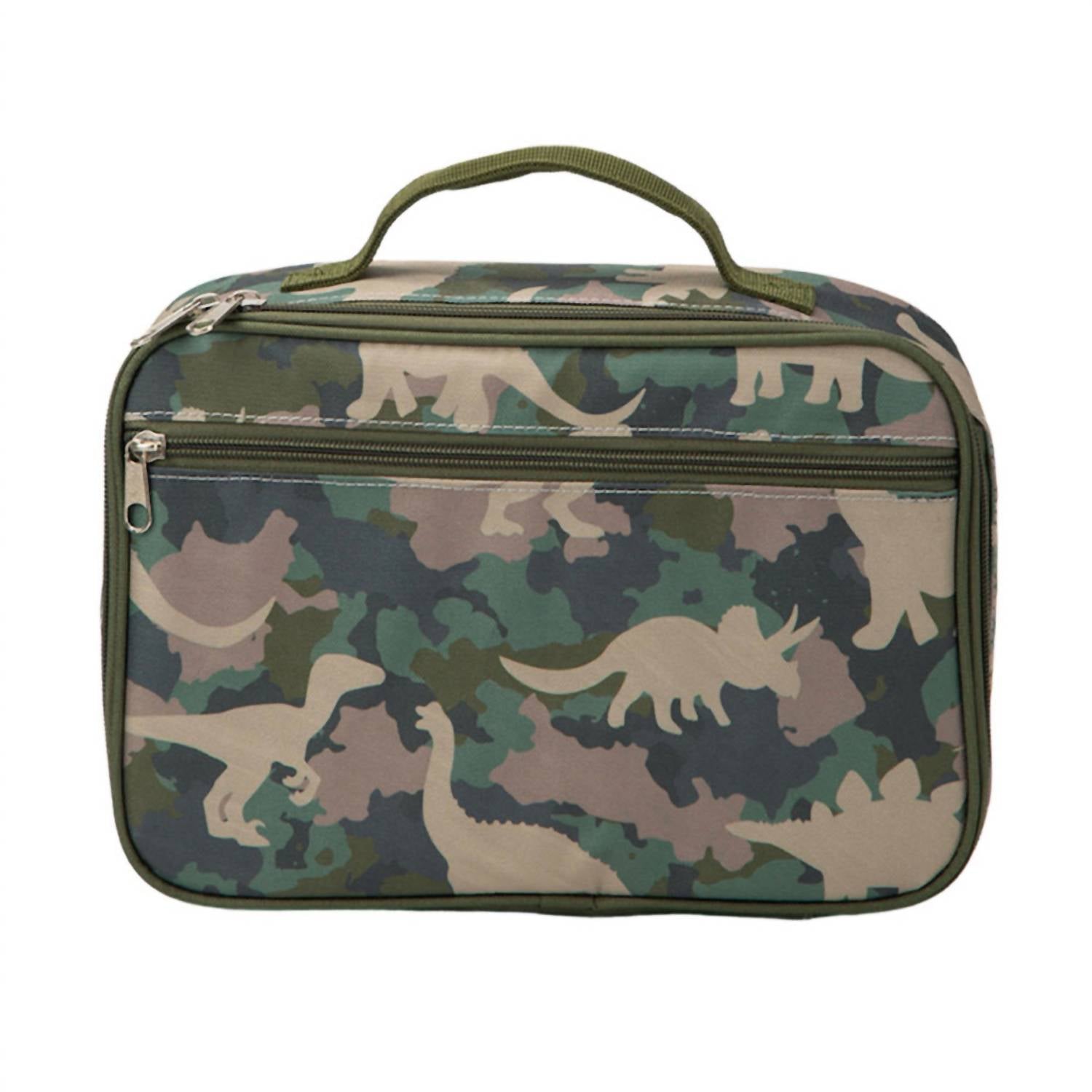 The Kid's Hidden In Time Lunch Box by Jane Marie is a practical choice for a child's daily nourishment needs. Featuring a PEVA lined interior, it ensures your child's meals stay fresh and appetizing. With a zip-around closure with dual zippers and an additional top exterior zip closure pocket, accessibility is easy and secure. Measuring 10.5" L x 3.5" W x 7" H, it's designed with a convenient carry handle for effortless portability.